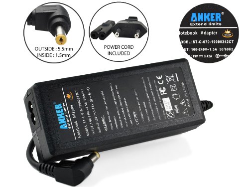 Anker® CE FCC Golden AC Adaptateur Secteur Chargeur avec Câble d'alimentation pour Acer Aspire 3000 3100 5733 5315 5742 5738 5750 5610 5920 5738z 5736 5738zg 5720 5732 5732z 5520 6930 6530 7730 7740g 7741g 9300; Aspire 3610 3630 3690 4810 5715z 5733z 5740 5740g 5101 5715 5745 5720z7745g 7530 7715z 3810 5810 7730z 6920 5610z 9410; Travelmate 5720 5742 2300; Extensa 5635 7630[19V 3.42A 65W Garantie 18 Mois]